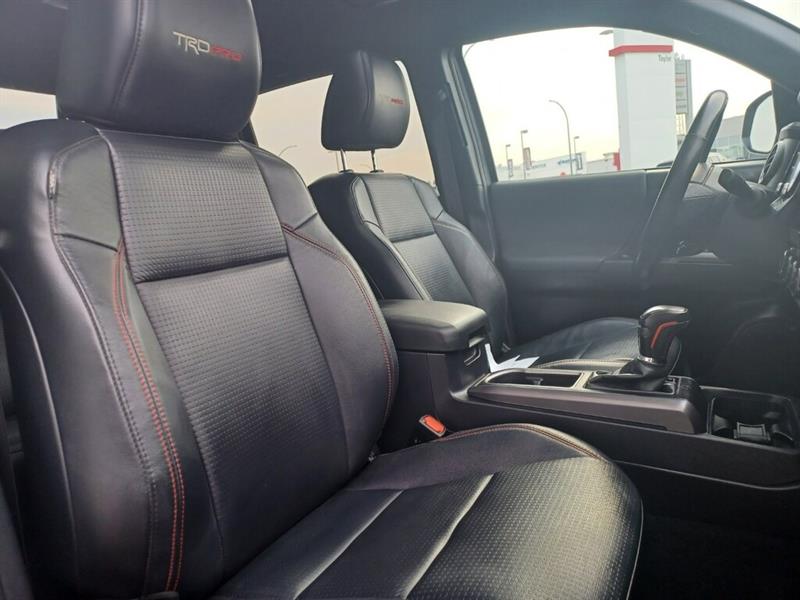 2021 Toyota Tacoma TRD Pro Off-Road Performance Truck in Regina, SK The 2021 Toyota Tacoma TRD Pro is the ultimate midsize pickup for off-road adventure, rugged capability, and Toyota reliability. Built with exclusive TRD performance upgrades, this truck is ready to take on Saskatchewan trails, job sites, and daily drives with confidence. Key Features of the 2021 Tacoma TRD Pro Proven Power 3.5L V6 engine with 278 horsepower and 265 lb-ft of torque, paired to a 6-speed automatic TRD Pro Off-Road Upgrades Includes FOX Internal Bypass shocks, TRD-tuned suspension, TRD skid plate, TRD Pro cat-back exhaust, and all-terrain tires for unmatched trail performance. 4x4 Capability Standard 4WDemand part-time 4WD with Crawl Control and Multi-Terrain Select for conquering mud, snow, and gravel across Saskatchewan. Exclusive Styling TRD Pro heritage grille, hood scoop, LED fog lights, black alloy wheels, and unique TRD Pro badging. Interior Comfort Leather-trimmed heated seats, power-adjustable drivers seat, premium JBL audio system, and a power moonroof for extra comfort and style. Technology & Connectivity 8-inch touchscreen with Apple CarPlay & Android Auto, navigation, wireless charging, and multiple USB ports. Toyota Safety Sense P Standard advanced safety features including Pre-Collision System with Pedestrian Detection, Lane Departure Alert, Adaptive Cruise Control, and Automatic High Beams. Why Choose the 2021 Tacoma TRD Pro in Regina? The Tacoma TRD Pro delivers everything Saskatchewan truck buyers want: off-road toughness, Toyota dependability, and everyday practicality. Whether tackling Regina winters, hauling gear to the lake, or hitting the backcountry trails, this truck is built to perform. 3.5L V6 DOHC 24V LEV3-ULEV70 278hp 6-Speed Automatic 4WD Awards: * ALG Canada Residual Value Awards, Residual Value Awards